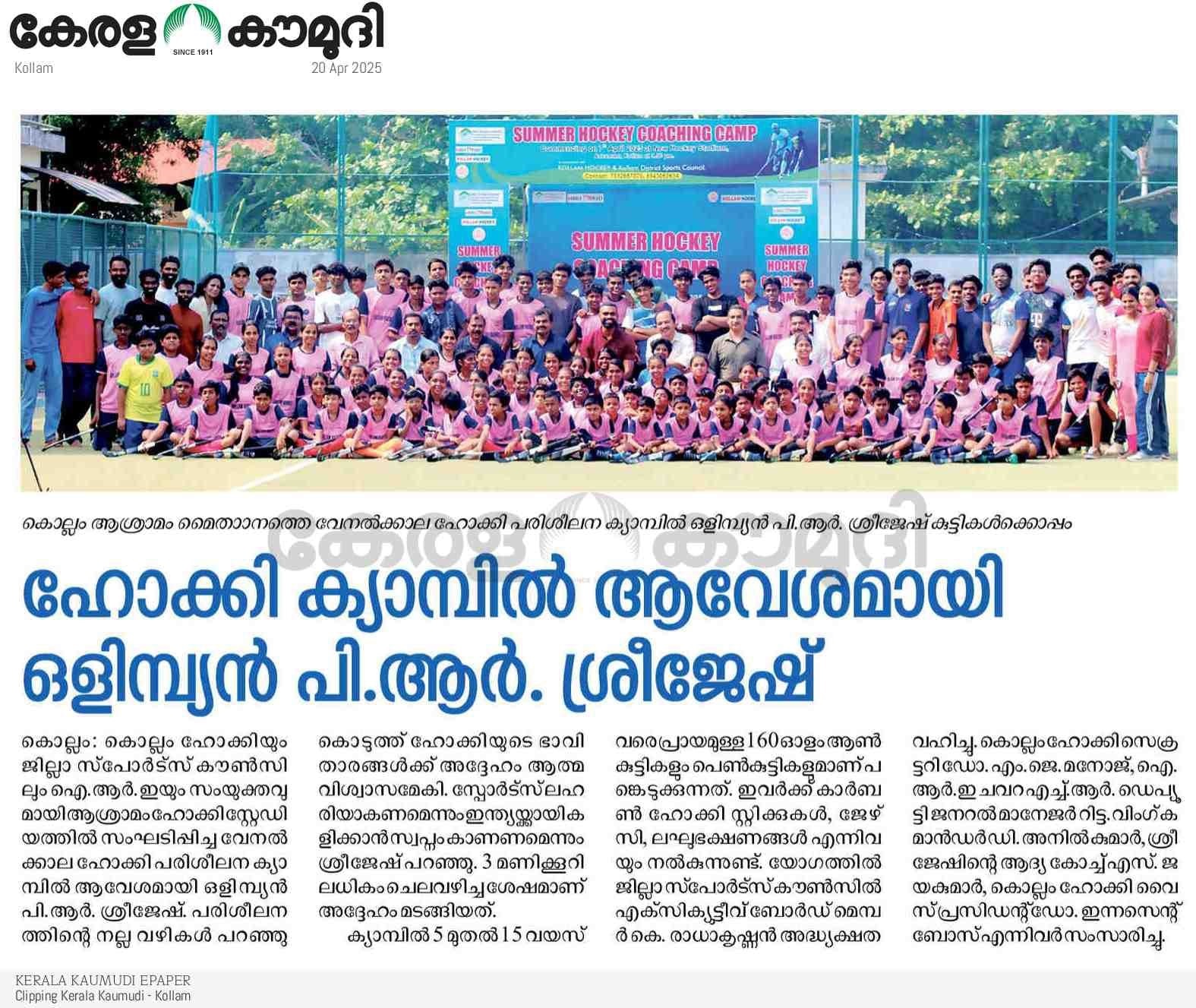 Gallery Felicitation of Junior team which won the Junior State Championship 2024-25 The GC meeting of Kollam was inaugurated by Sri V. Sunil Kumar, President of Kerala Hockey. Summer Coaching Camp -2025